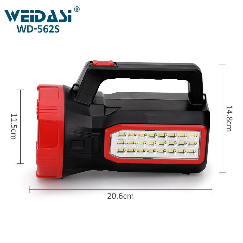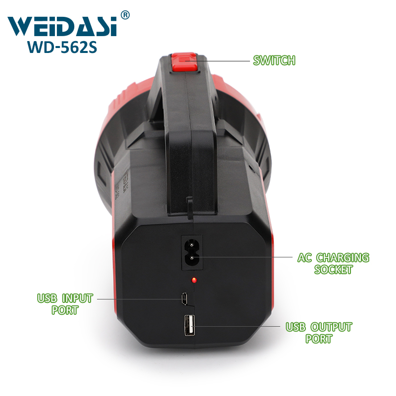 چراغ قوه و نورافکن شارژی ویداسی 562S با نور مهتابی قوی، باتری قابل شارژ، پنل خورشیدی و بدنه مقاوم در برابر آب، انتخابی عالی برای کمپینگ، سفر و مواقع اضطراری است.